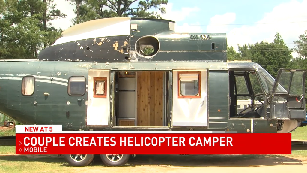 An Alabama couple who spotted the main body of a helicopter on Facebook Marketplace decided to buy the aircraft — and converted it into a camper.