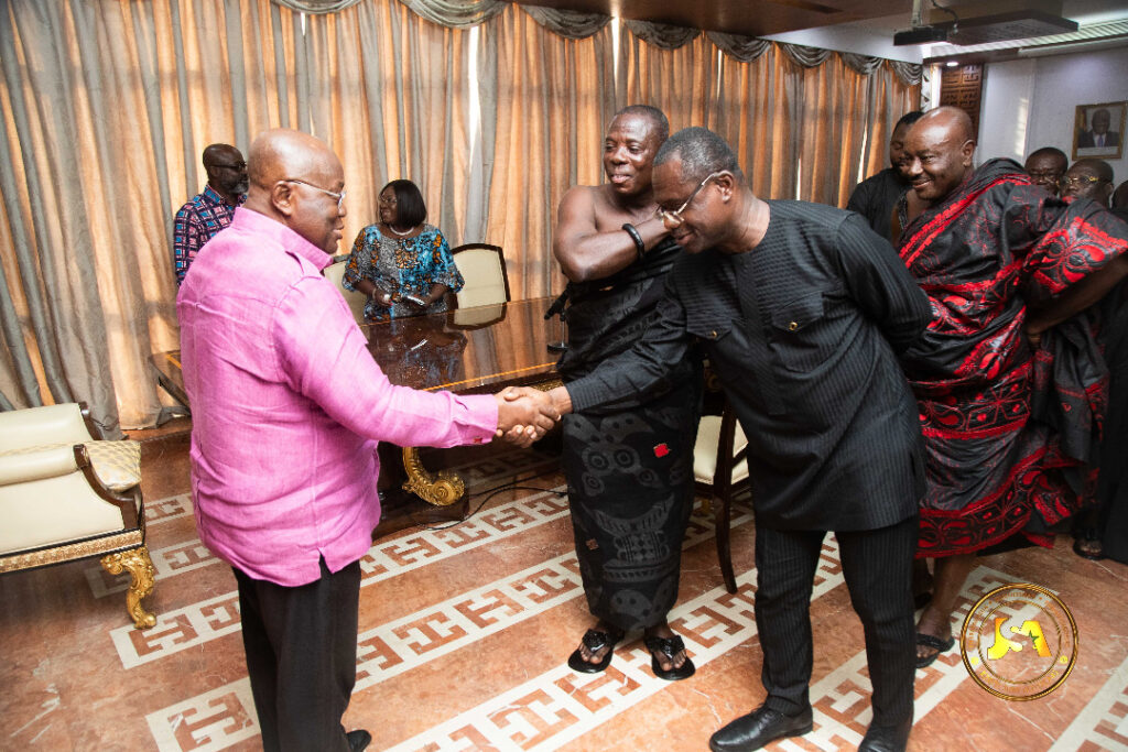 The delegation, led by Abusuapanyin Barima Osei Berko, met both President Akufo-Addo and Vice President Dr. Mahmoud Bawumia on Wednesday, July 20, 2022, at the Jubilee House, the seat of government, and formally invited them to the funeral of the late father of Dr. Siaw Agyepong—Opanyin Samuel Kwame Agyepong.