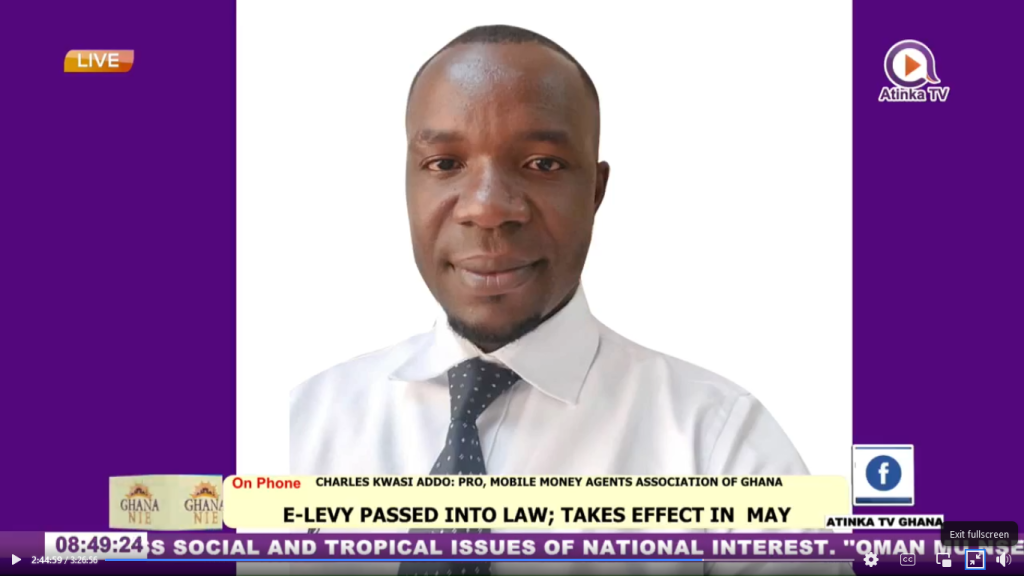 Speaking on Atinka TV‘s morning show, Ghana Nie with Ama Gyenfa Ofosu Darkwa, the Public Relations Officer (PRO) of Mobile Money Agents Association of Ghana, Mr Charles Kwasi Addo acknowledged that government had reduced its initial proposal which was 1.75 per cent to 1.50 per cent after broader consultations.