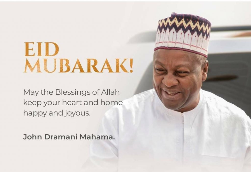 The Former President, Mr John Dramani Mahama has wished all Muslims in the country a happy Eid-ul-Adha.