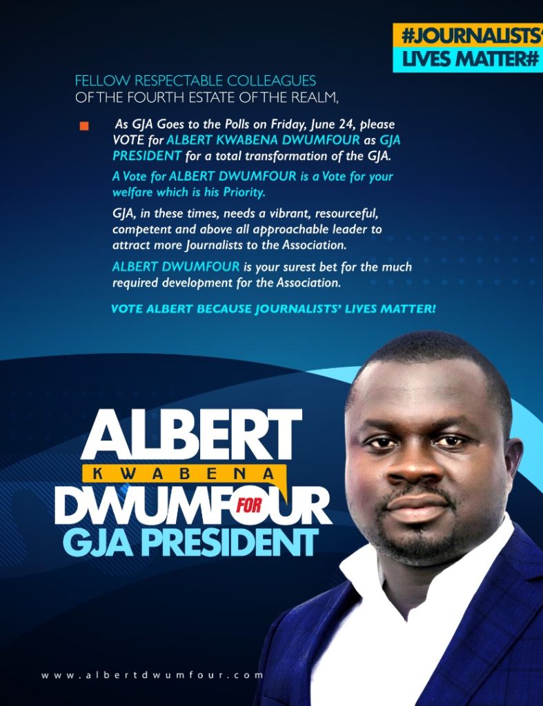 The elections are slated for Friday, June 24, 2022, across the country, and Dwumfour, a versatile media practitioner and PR consultant, is tipped by many to be the next president of the GJA.