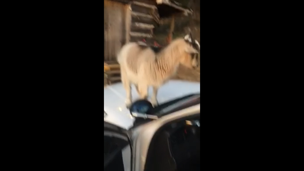 One of the goats climbed into the vehicle through the open driver’s side door and started eating some of Thrower’s paperwork. The other goat climbed up on the hood of the car, the sheriff’s office said.