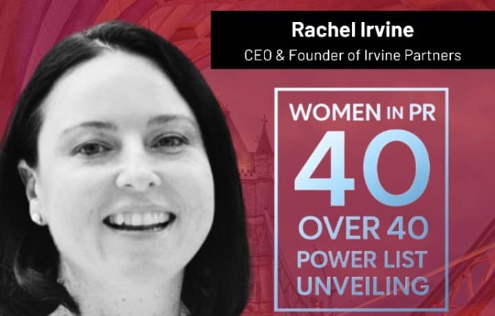 Irvine Partners (IP) is proud to announce that its CEO, Rachel Irvine, has been named to the prestigious Women in PR 40 over 40 power list in the United Kingdom.