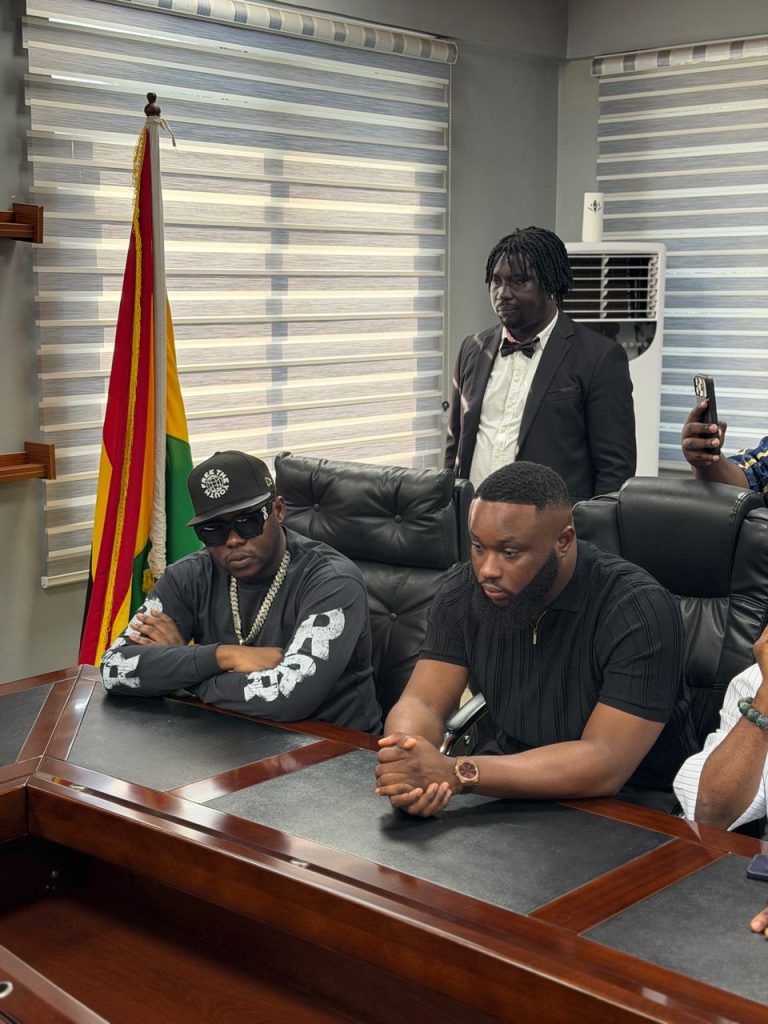 Medikal has paid a courtesy call on the Minister for Youth Development and Empowerment, George Opare Addo, following his appointment as an ambassador for the Red Means Stop initiative.