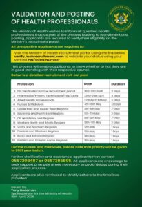 The Ministry of Health Ghana has announced the commencement of a nationwide validation and posting process for qualified health professionals, as part of efforts to recruit and deploy personnel across the country’s healthcare system.